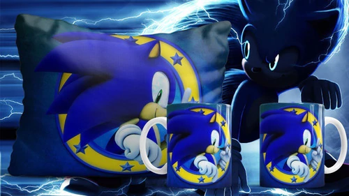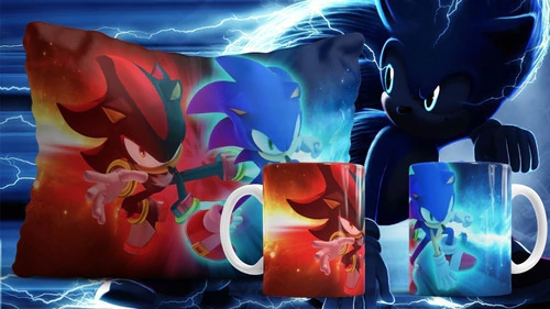 Plantillas Sublimación Cojines + Tazas Sonic